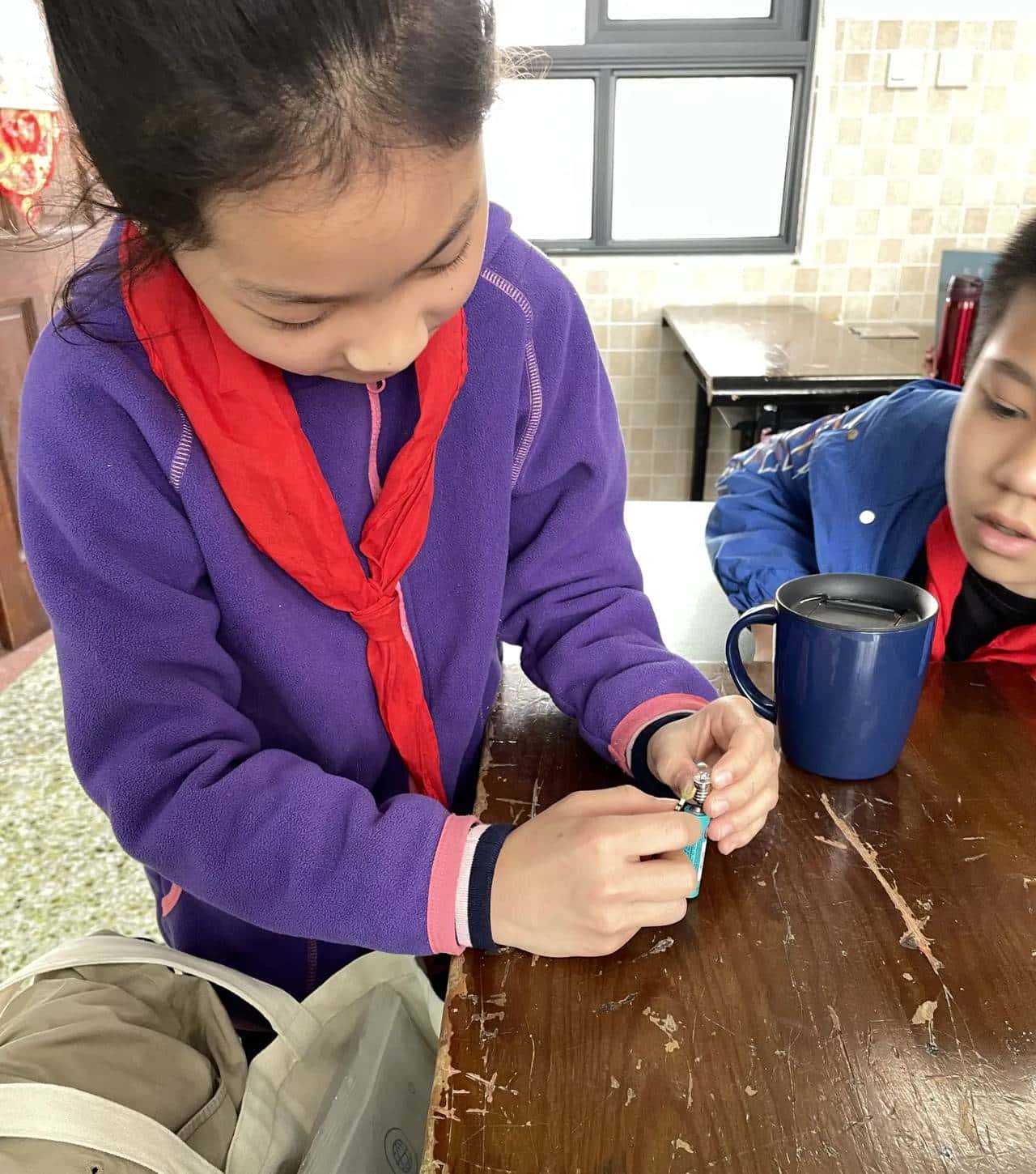 观察结束后,发放灯泡电线和电池,开始安装(第一个班是所有材料发下去的,几乎没有人去仔细观察新工具,而是很兴奋的连接灯泡,于是在第2个班进行了改善,先发一部分观察,再发另一部分)
