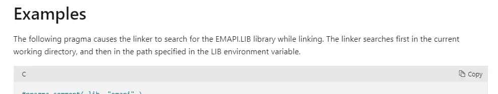 如题,在vs中引用库,有许多文章讲。但pragram comment引用库时,搜索路径从哪里开始呢?从当前工作目录,也就是当前工程的工程目录。以下片断是微软官方的例子,其明确指出linker第一从当前工作目录搜索,写相对路径时注意不要写错了。