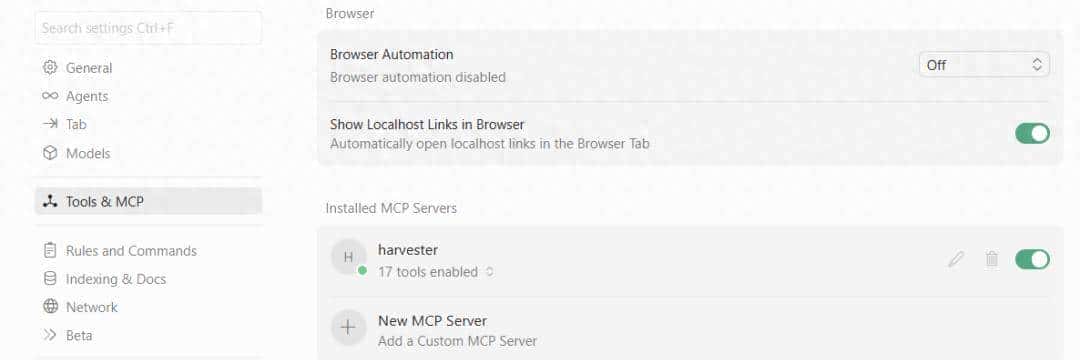 harvester-mcp-server在 Cursor 里配置 MCP