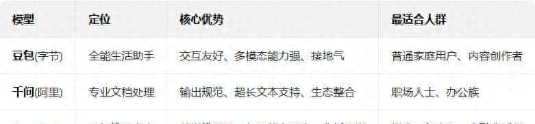 结论:短视频创作选豆包,商务文档选千问,专业长文选DeepSeek