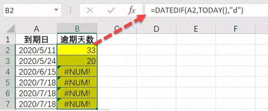 用Excel的时候,如果到期日还没到,是显示错误值#NUM!的。