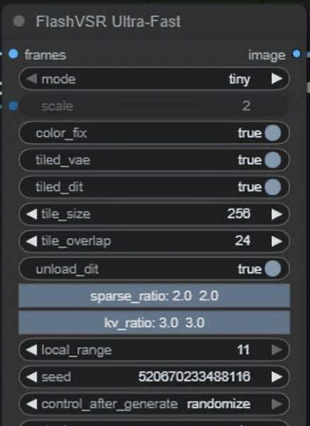 方案二:全能修复流(2倍插帧 + FlashVSR 放大)