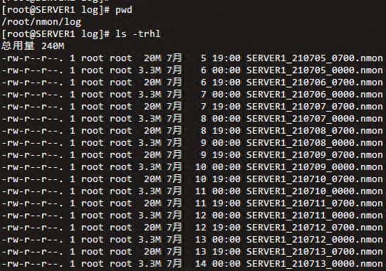 实现了的效果会生成两个日志文件,文件命名规则为:<主机名>_<日期>_<起始收集时间点>.nmon,我这里的是这样的: