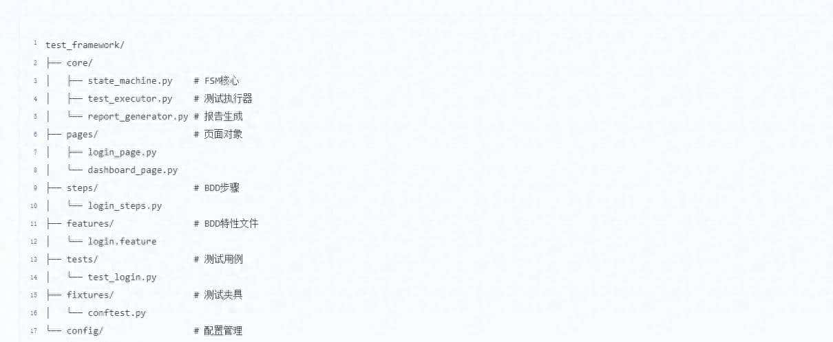 这个组合框架充分利用了各个工具的优势,通过FSM模式提供了稳定可靠的测试执行流程,适合复杂的企业级应用测试。