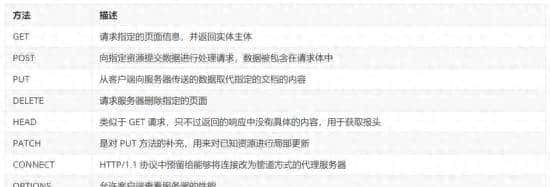 除了常用的 GET,POST 请求外,还有一些请求方式,如 PUT、DELETE、HEAD 等,将其简单总结如下: