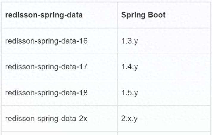 需要注意Spring Boot 版本与redisson-spring-data的对应关系,如下表所示: