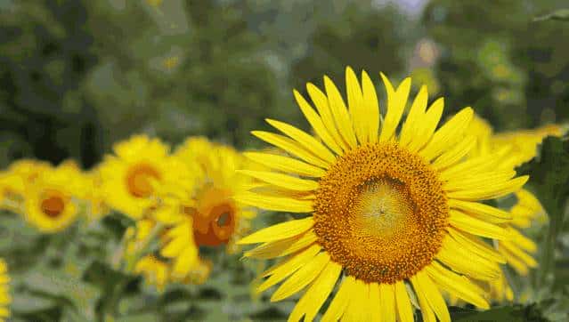 Its stem is not high, yet the flower blooms in full blossom. Following the directions of sunshine, the sunflowers show a brilliant and eye-catching smile against the sun, attracting bees and butterflies to fly in various beautiful poses.