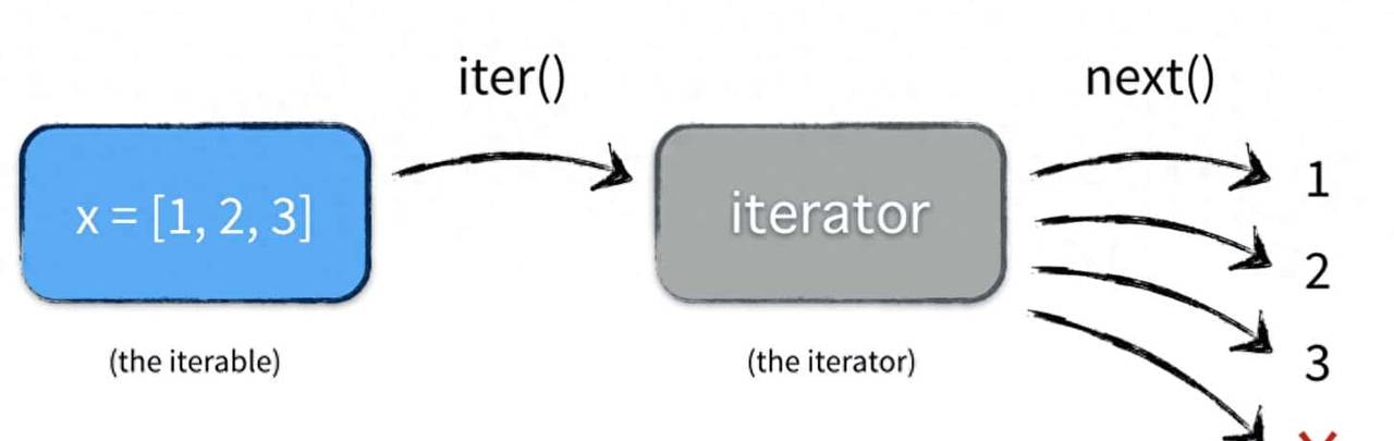 顾名思义,迭代器就是用于迭代操作(for 循环)的对象,它像列表一样可以迭代获取其中的每一个元素,任何实现了 __next__ 方法 (python2 是 next)的对象都可以称为迭代器。
