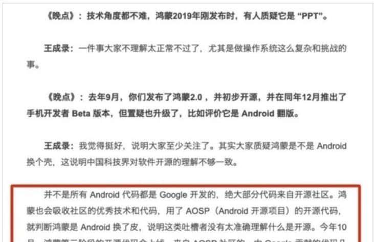 终于看到一个相对准确的文章了。用AOSP其实不丢人,但是宣传成整个系统和美国一点关系都没有,就真的过了。何种营销手段,我们作为吃瓜群众其实无所谓,不过一遍一遍的狂轰乱炸式的侮辱我们的智商,就有点气不过了。附带说个别的,你看看LINUX的核心代码修改权在谁手里,前几天美国人自己还在打架呢。大佬都认为重新手机系统并不NB,但是我们的宣传营销需要将鸿蒙塑造成一个没有一行美国代码的手机系统。
