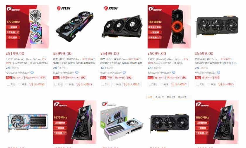 此前炒得最凶的3070和3080系列也同样跳水,并且降幅更大。目前RTX3070Ti的进货价降到了5800元,市场价不到6000元,去年4月该型号显卡的进货价曾一度逼近1万元,相当于直接打了个6折。