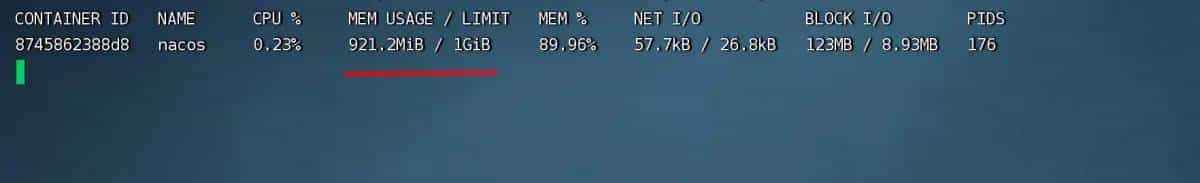 [root@hecs-296579 ~]# docker update --memory 1024 m --memory-swap -1 nacos