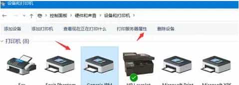1.打开控制面板,硬件和声音,设备和打印机,随意选择一个打印机图标,选择打印机服务器属性。