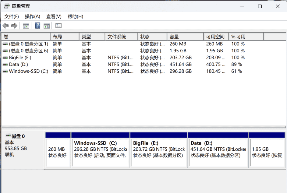 正文开始!已经用了一段时间了,还可以重新分盘吗,我对这个C盘196GB很没有安全感,我上次就是没注意C盘的使用量用爆了换了一个,现在C盘安软件、D盘451GB用来存下载的东西、E盘303GB用来存我的代码,我们一起重新合理科学规划一下吧!。