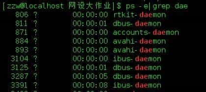 zzw 14124 13991 0 00:38 pts/0 00:00:00 grep –color=auto dae