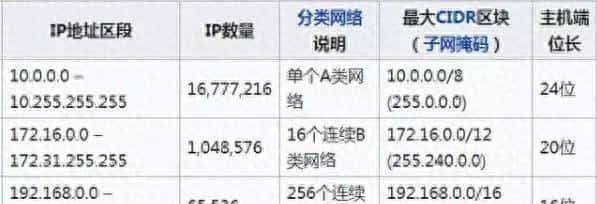 除了这三个ip地址段为私有ip地址外,其它的都为公网ip。