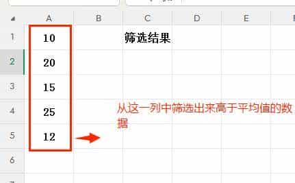 在单元格中输入公式DROP(REDUCE(“”,A1:A5,LAMBDA(当前数组,当前值,IF(当前值>AVERAGE(A1:A5),VSTACK(当前数组,当前值),当前数组))),1),回车就可以得到结果