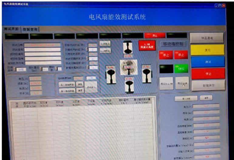 本测试系统主要采用上位机软件控制,软件平台采用美国NI 公司专业测控软件LabVIEW作为其开发平台,风速计移动采用松下伺服电机驱动,德国进口风速计测量风速风量,设备测试工作全自动完成,并将试验数据记录、保存、自动生成风量报表与能效等级评定,具有数据准确、重复性好、效益高、数据贮存方便等特点。