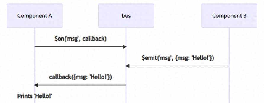 4. bus 将 {msg: 'Hello!'} 数据作为参数调用组件 A 的 callback 回调函数