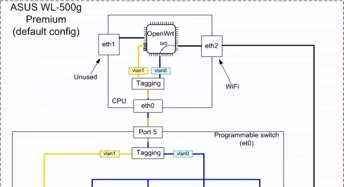 - config switch_vlan option device 'switch0' option vlan '1' option ports '1 2 3 5t' option vid '1'config switch_vlan option device 'switch0' option vlan '2' option ports '4 6t' option vid '2'config switch_vlan option device 'switch0' option vlan '3' option vid '201' option ports '0t 5t'