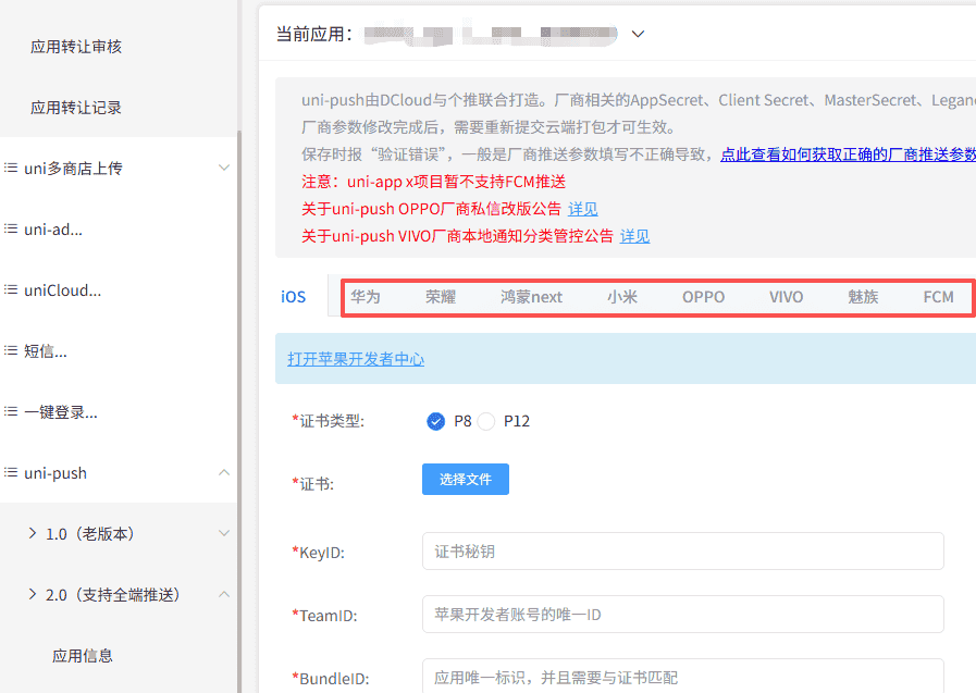 点击链接 查看 各厂商推送应用创建配置流程 必须开通推送服务。