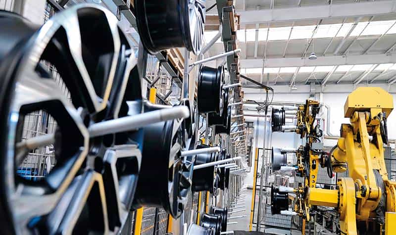 秦皇岛经济技术开发区一家车轮企业的机器手在工作中(2023年2月12日摄) 杨世尧摄/本刊