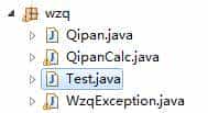 第一是代码结构。图中有棋盘类,棋盘计算类,测试类,自定义异常类。
