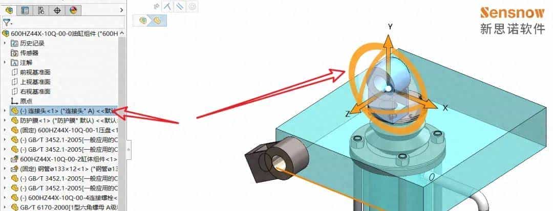 客户反馈,在FM设计树点击某个零部件后图形区将出现对应的黄色三重轴,此显示会将零部件覆盖,不清楚是什么样的功能,寻求如何关闭!