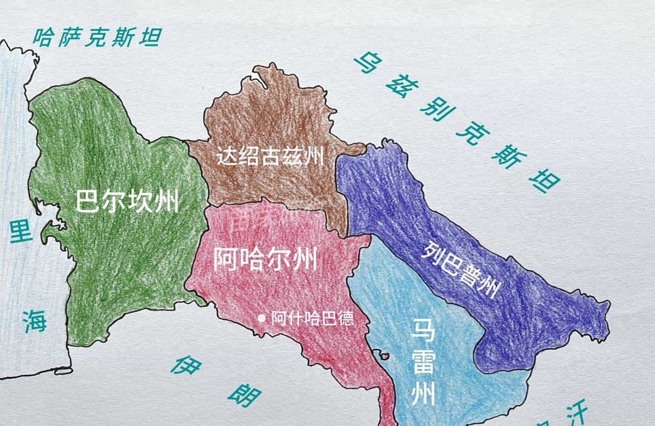 5个州—巴尔坎州、达绍古兹州、阿哈尔州、列巴普州、马雷州