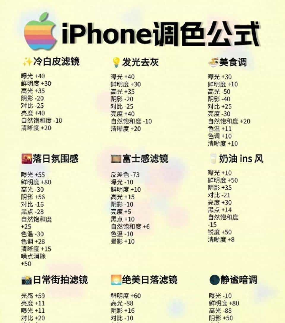 当一组iPhone调色公式在社交平台疯传,摄影圈的“内卷”直接进入“公式化时代”。从冷白皮滤镜到静谧暗调,九种风格的参数被扒得明清楚白,这下就算是摄影小白,也能靠着这些“数字密码”拍出朋友圈爆款图。