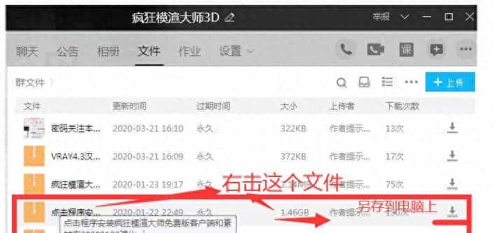 步骤1.1、不想浪费时间,脑子机灵点,由于下载方法许多。请另存这个“1.46G”文件(含安装包和素材包)到电脑的硬盘里,注意别找不到位置了,可以建文件夹,要注意硬盘剩余内存空间还装得下吗?