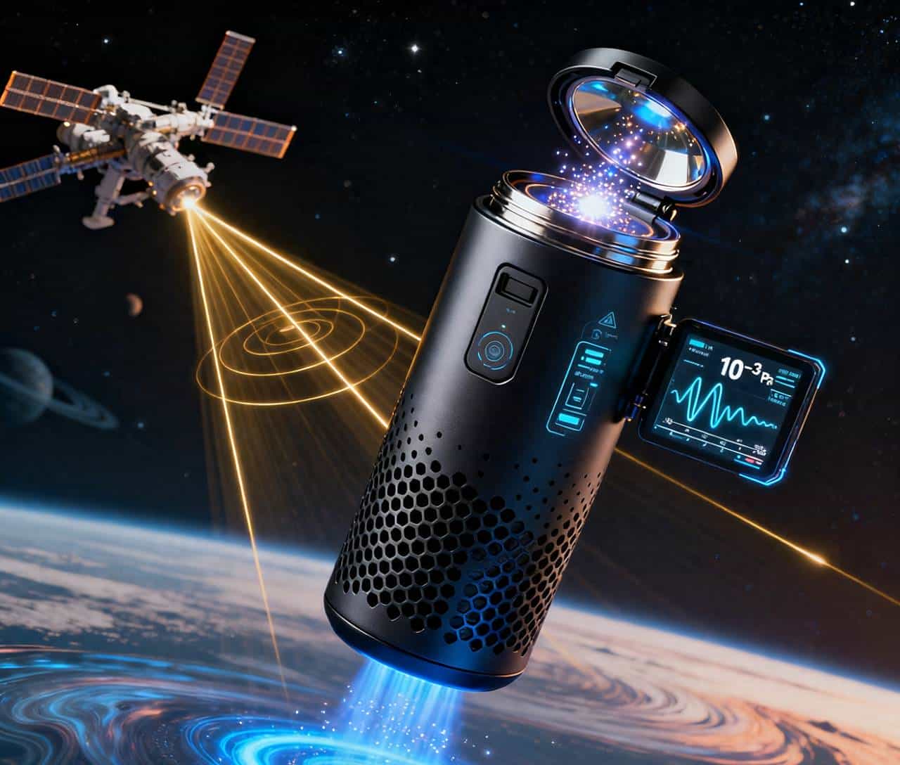传统卫星轨道校准依赖地面测控站,精度约1米,无法满足深空探测或编队飞行的需求(如卫星编队飞行的轨道精度要求<10厘米)。将微型探测器集成在卫星上,利用引力波的时空基准特性,实现轨道自主校准: