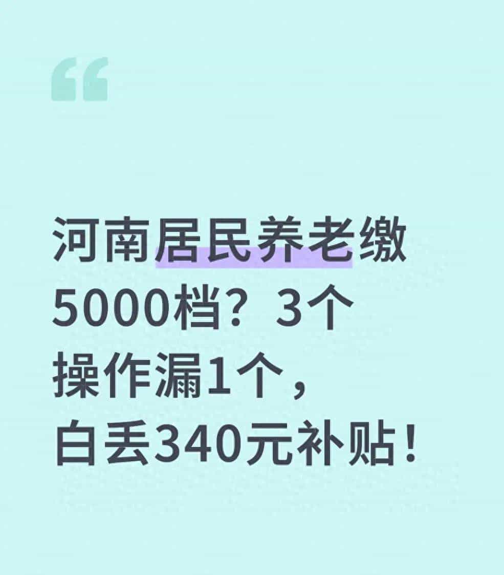 河南的老乡注意了!每年缴5000元居民养老保险,想退休后多领养老金,可别忽略了关键操作——国家给的340元政府补贴,许多人由于没做对3件事,白白错过了!