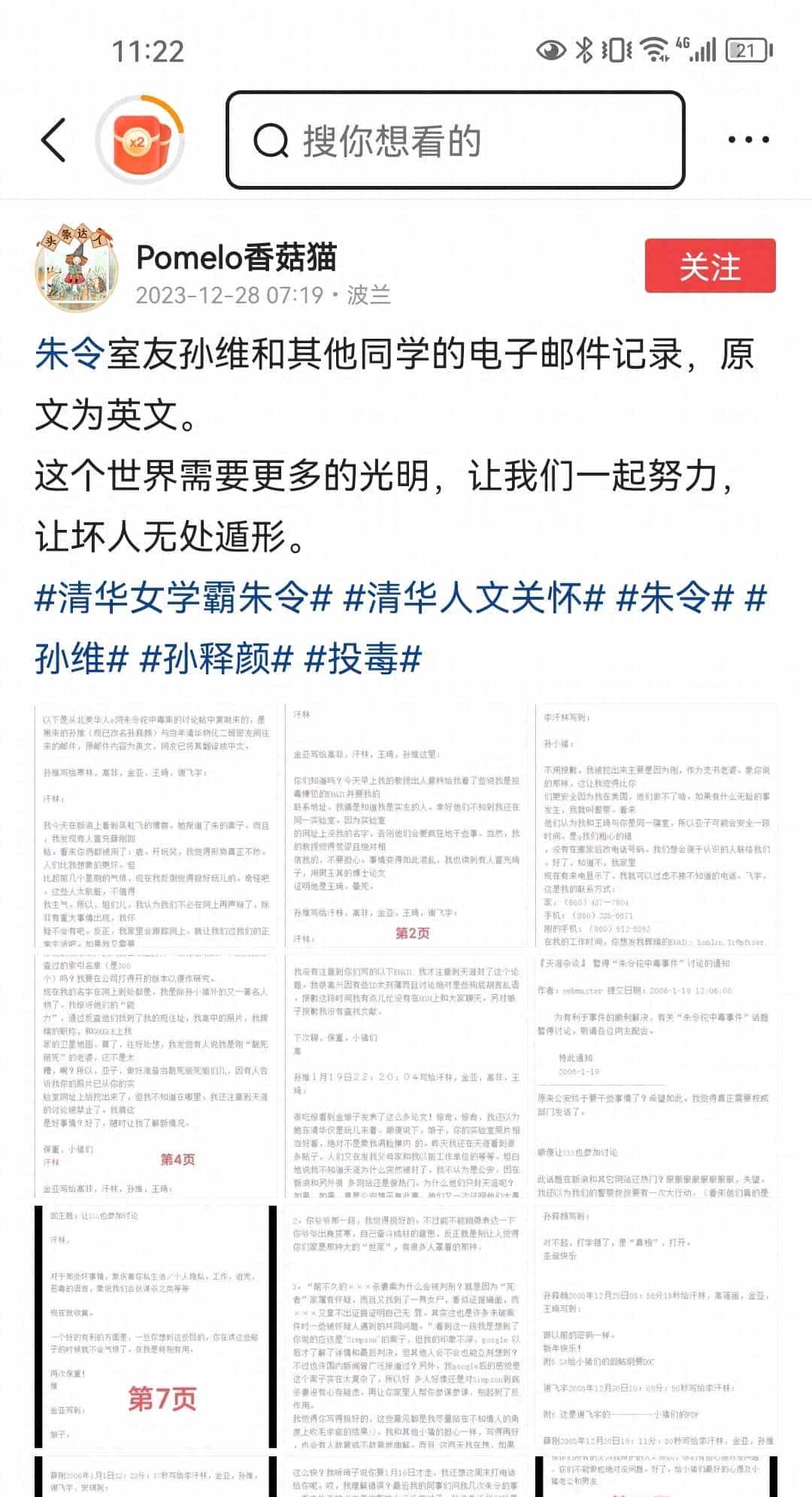 『天涯杂谈』暂停“朱令铊中毒事件”讨论的通情1087994585