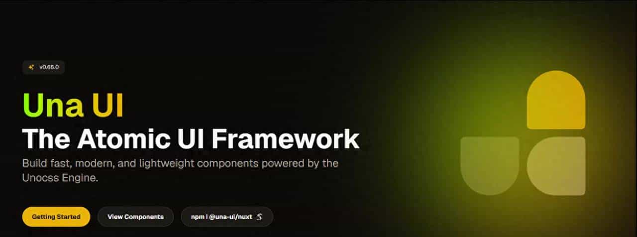 - 快速上手与资源入口:网站提供明确的操作入口,包括 Getting Started(快速开始):引导开发者完成框架的基础配置与使用流程; View Components(查看组件):展示框架内置的 Vue 3 组件库,方便开发者预览与调用; 直接提供安装命令 npm i @una-ui/nuxt,支持 Nuxt 生态下的快速集成。
