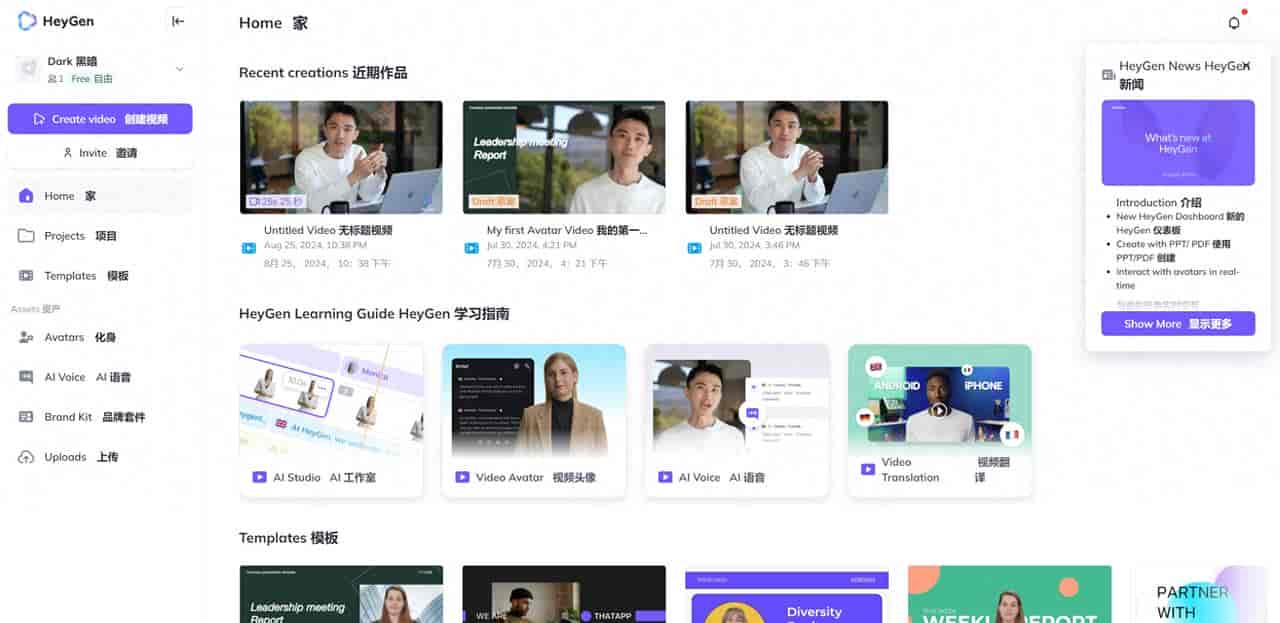 - 支持多语言生成:HeyGen不仅支持中文,还支持多种语言的生成,使其能够满足全球用户的需求。无论你是要制作面向国内还是国际市场的内容,HeyGen都能为你提供便利。