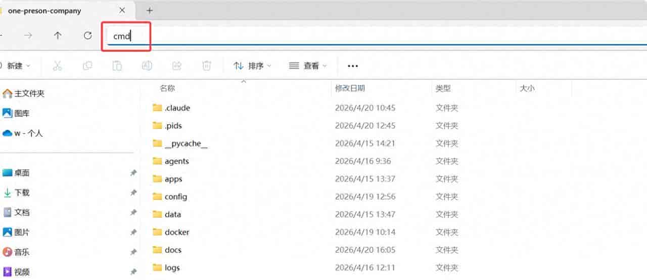 还有一种方式,就是你进入你的项目文件夹,然后在上方的浏览栏中输入cmd
