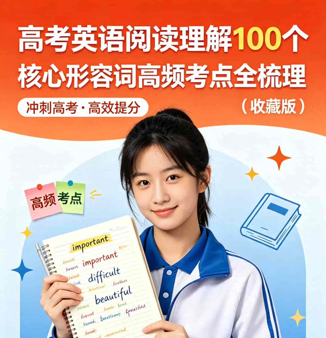 关于“出现次数”的说明:高考真题总数有,任何单个形容词单张试卷最多出现1-2次,因此通用的统计口径是“考频≥N次”。本清单中标注的“超高频”≈5年以上真题累计出现≥10次,“高频”≈出现5-9次,“中频”≈出现2-4次,“低频”≈出现1-2次。