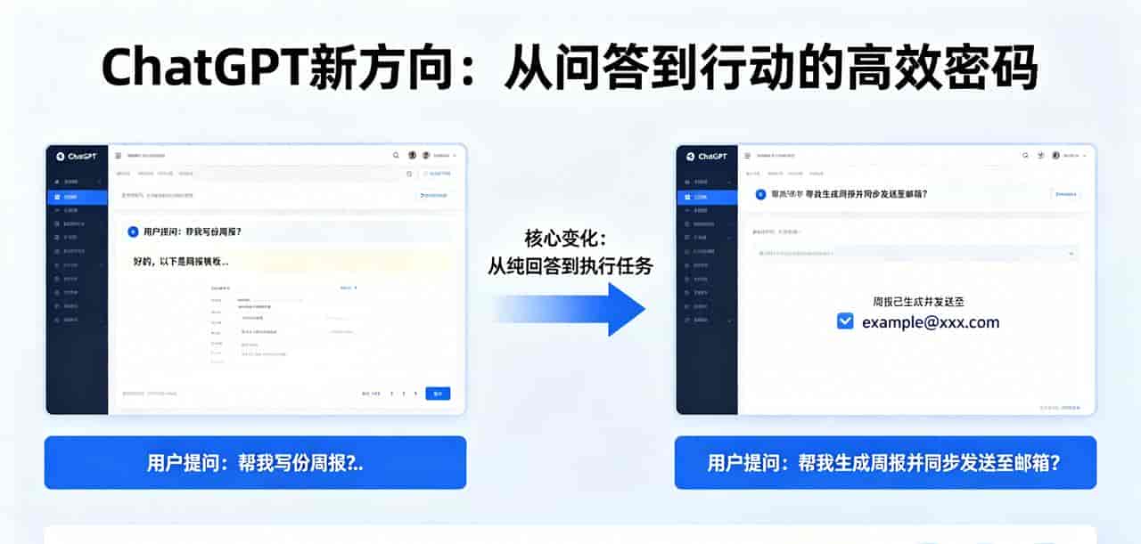 ChatGPT的新方向,核心就一个:从“被动响应”到“主动推进”。以前它是“你问我答”的单向输出,目前是“你问我帮”的双向配合,具体的变化的的体目前三个方面,每一个都能直接解决我们的核心痛点。