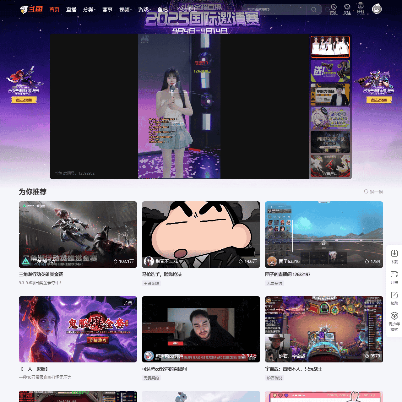斗鱼 - 每个人的直播平台提供高清、快捷、流畅的视频直播和游戏赛事直播服务,包含英雄联盟lol直播、穿越火线cf直播、dota2直播、美女直播等各类热门游戏赛事直播和各种名家大神游戏直播,内容丰富,推送及时,带给你不一样的视听体验,一切尽在斗鱼 - 每个人的直播平台。