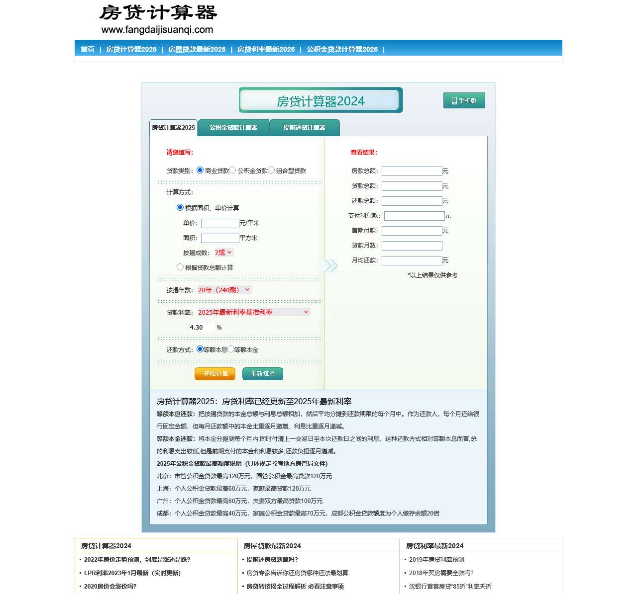 计算房贷首选房贷计算器2025,每天超过366万人使用2025房贷计算器在线计算房贷,包括房贷计算器、贷款计算器、公积金贷款计算器.房贷计算,就用贷款计算器最新2025和房贷计算器最新2025