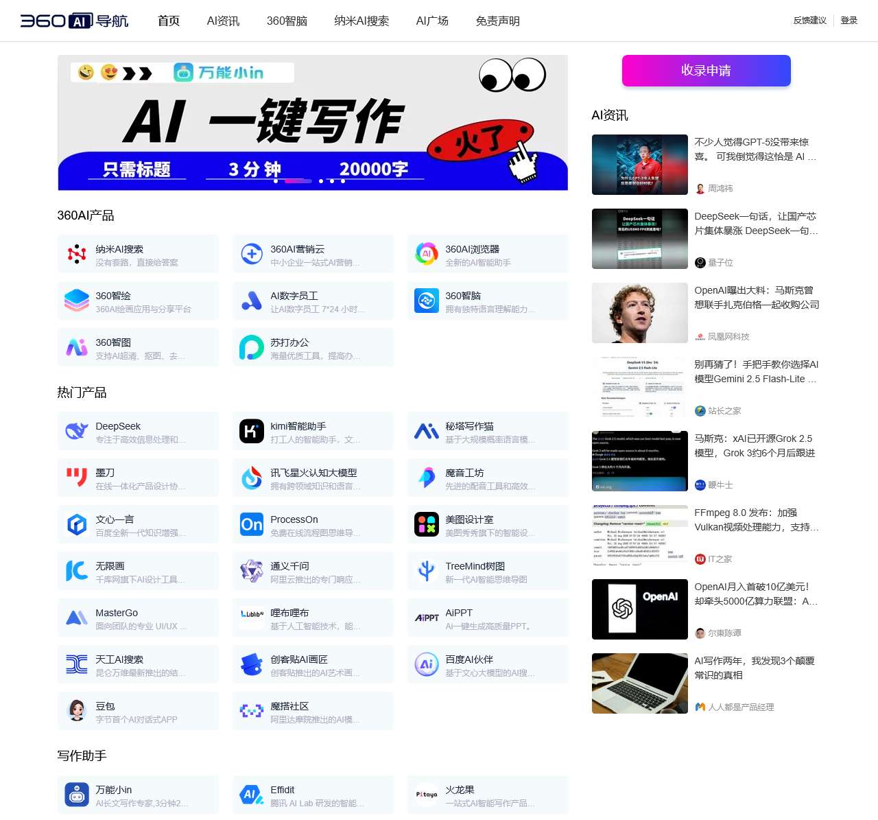 360AI人工智能商店,精选互联网资源最全的ai人工智能网,搜集并整理人工智能工具的网站、教程、资源,让您能够快速找到适合的工具和内容。收录AI工具网站、公众号、自媒体、书籍、电影等,分类包括AI趣站、AI开放平台、AI资讯、有趣网站、开源项目、AI学习平台等内容,涵盖了AI绘画,AI游戏,AI视频,AI网址大全,AI工具软件,AI搜索...