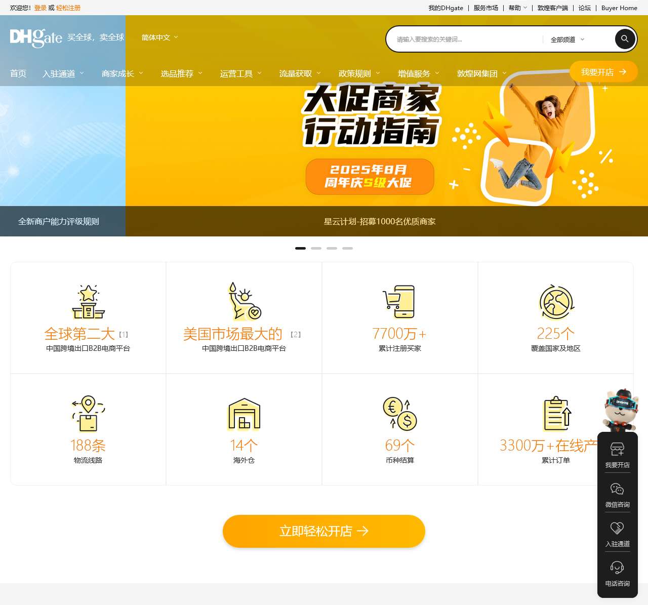 敦煌网外贸平台是全球领先的跨境电商外贸交易平台,以在线交易为核心的B2B小额外贸批发平台,把中国产品通过跨境电商平台卖到世界各地,帮助想从事外贸生意的朋友实现网上创业,网上开店!