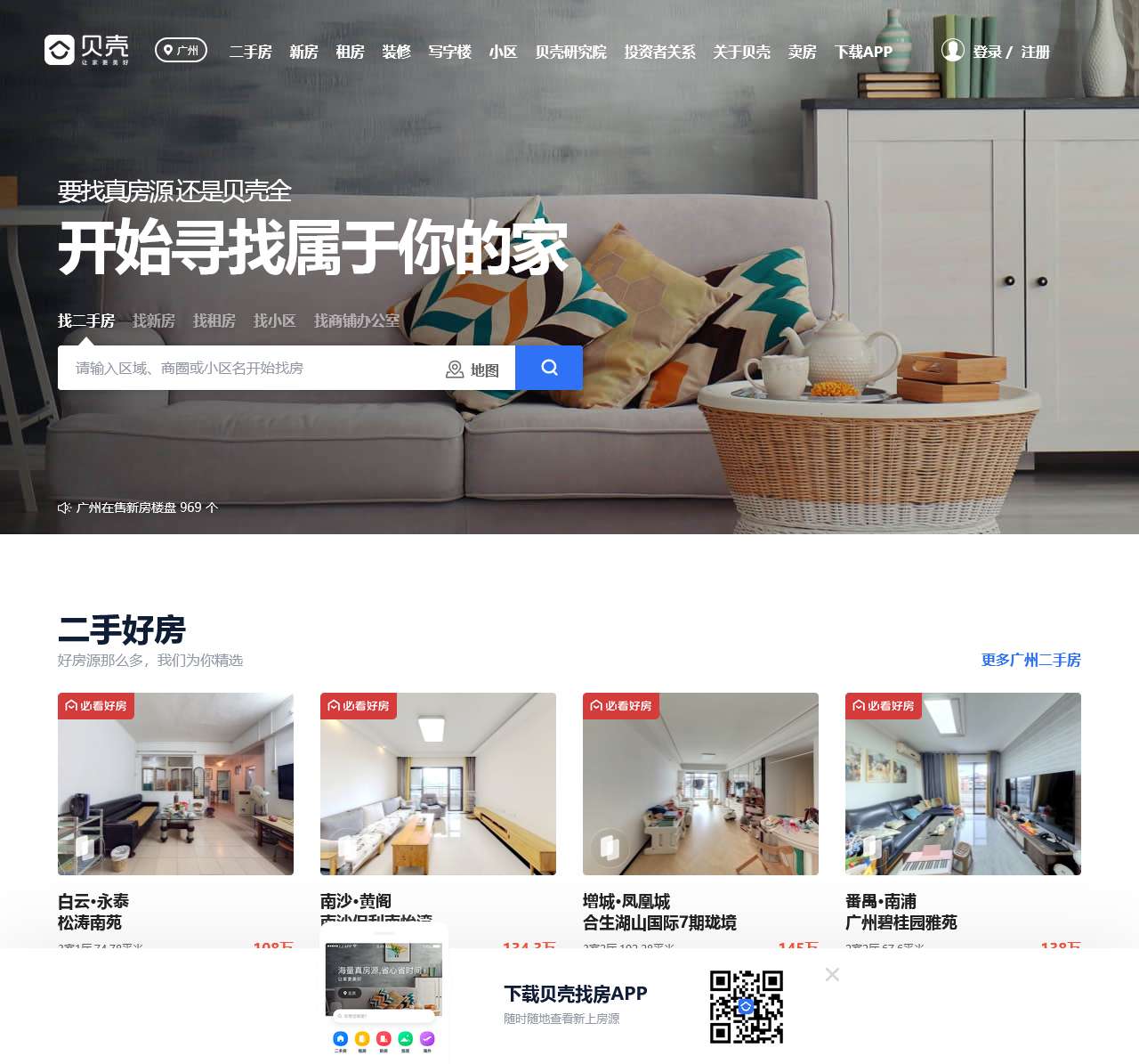 广州贝壳找房提供真实房源的房产信息平台,为广州买房、广州二手房、广州新房购买以及广州租房需求的用户提供便捷服务.同时有智能找房、VR看房等先进科技找房功能等你来体验,想在广州买房、购买广州二手房、新房、租房,想了解到一手房产资讯、房价行情,就来广州贝壳找房吧!
