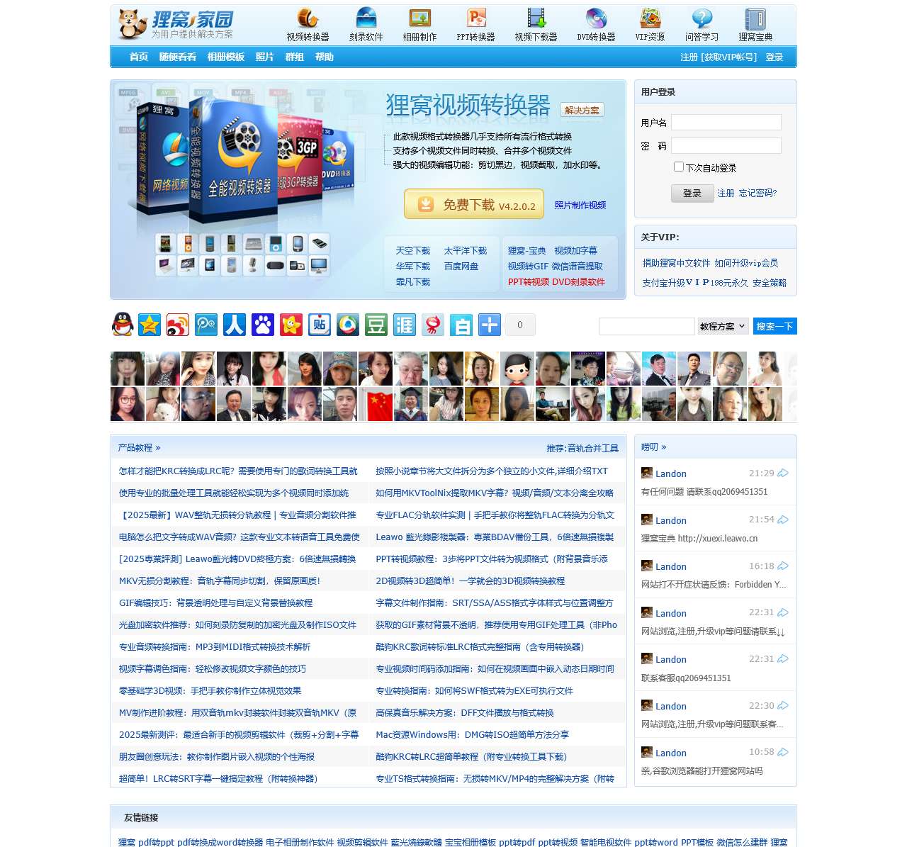 狸窝软件为广大网友提供各种全能视频格式视频转换器,以及手机万能3gp视频转换器,mp4,avi,mkv,flv,dvd格式转换器。你还可以在狸窝家园网认识全国相同爱好兴趣的朋友,一起交流各种免费视频格式转换器使用心得,狸友之家-我们的网上欢乐家园!
