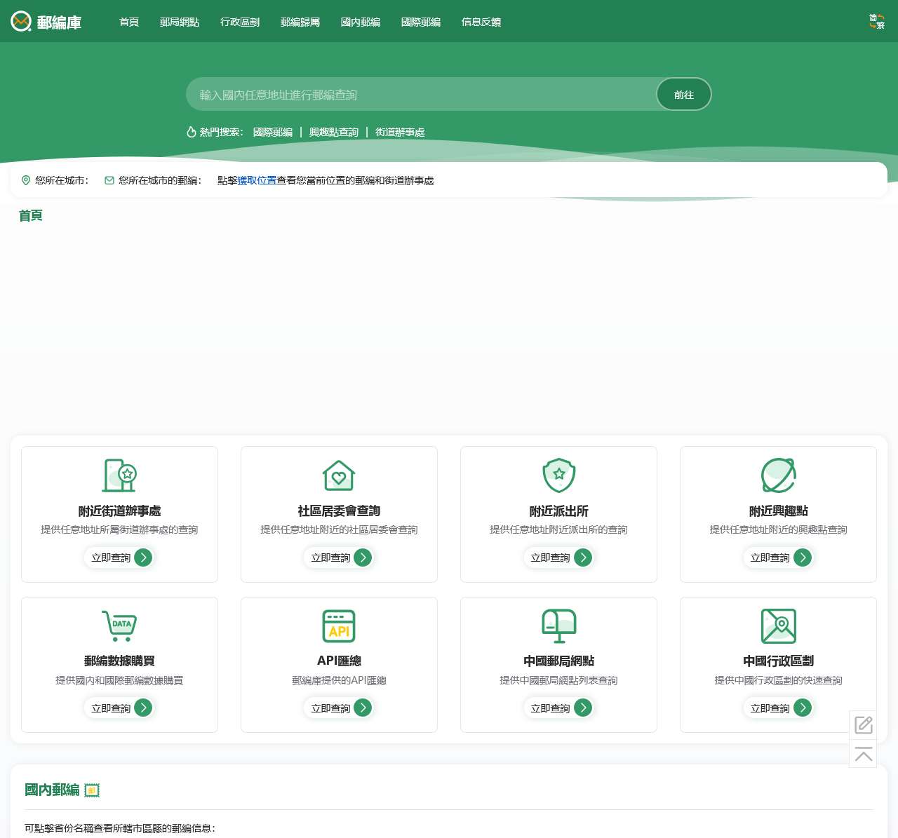 郵編庫網站已經提供超過20年的專業郵政編碼查詢服務,包括國内任意地址郵編查詢、國際郵編查詢等,并新增了地理位置服務功能,實現了任意地址所屬街道辦事處、居委會、興趣點查詢等功能。