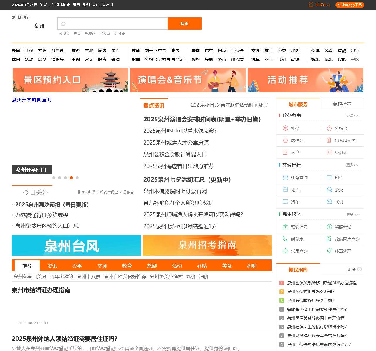泉州生活信息门户网站,提供泉州交通、泉州旅游、泉州房地产、泉州美食、泉州购物、泉州教育、泉州医疗、泉州招聘、泉州诚信商家等泉州生活服务类权威实用资讯。