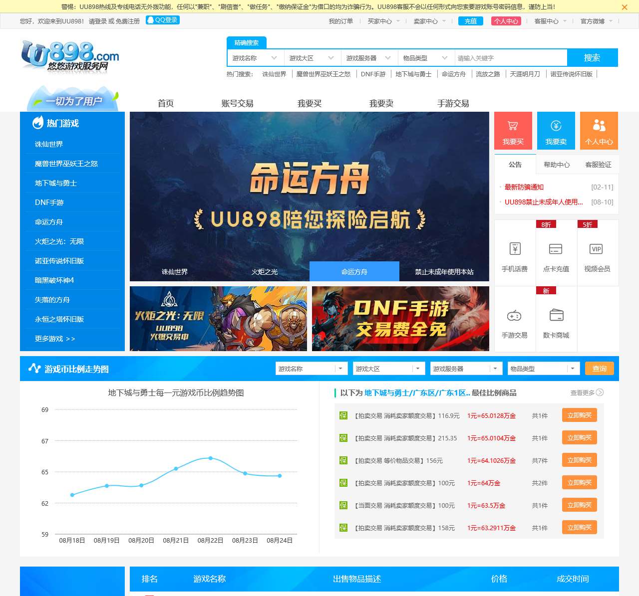 悠悠游戏服务网uu898是一个网络游戏交易平台,真诚为广大玩家提供手游、游戏币、游戏账号、点卡、装备、金币元宝、游戏代练等交易服务,游戏交易就上uu898.com!