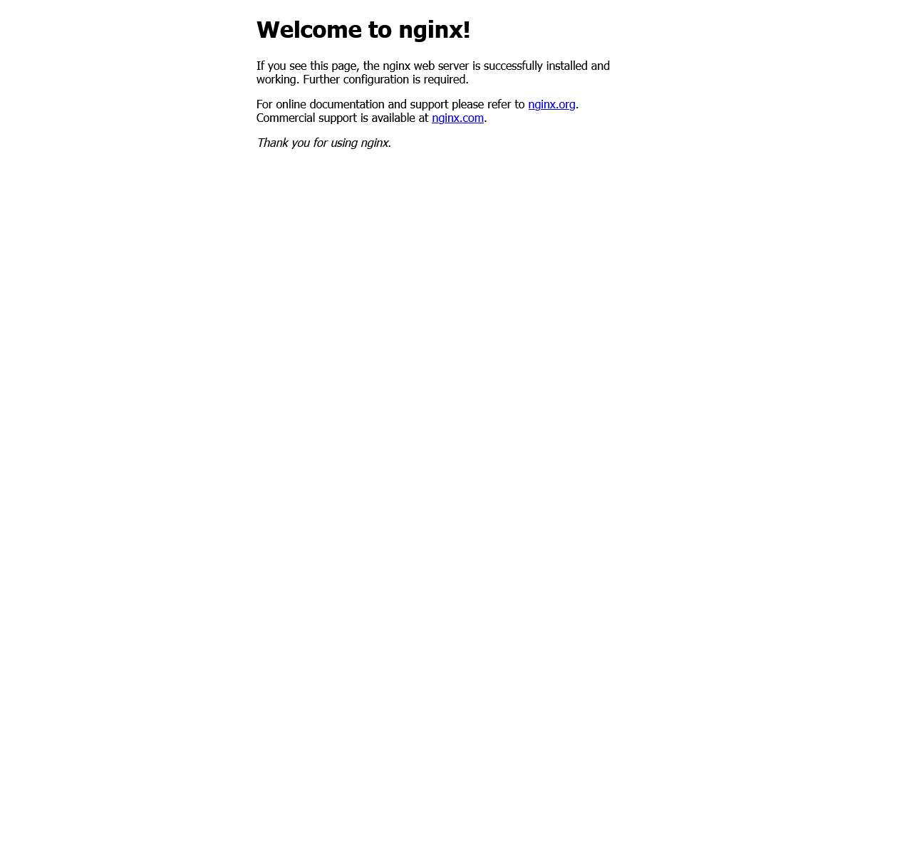 If you see this page, the nginx web server is successfully installed and