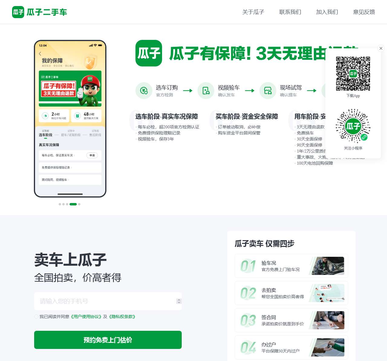买二手车,卖车选瓜子,瓜子二手车每车必检,超200项官方检测认证。全新推出“先试3天再买车”的买车新标准,为您提供天高达260公里的深度试驾体验,试驾满意再过户,不满意3天无理由退车。