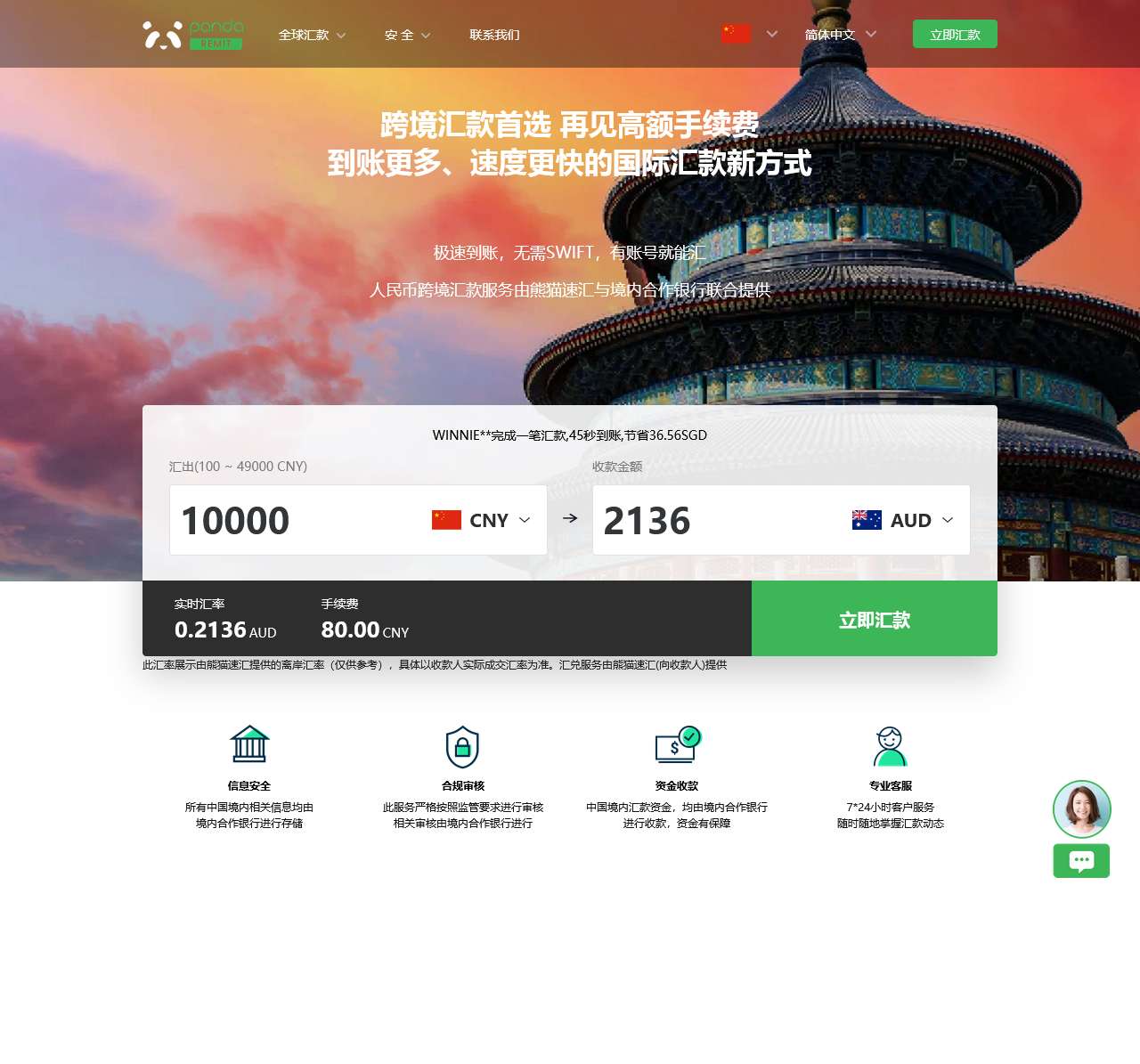 使用熊猫速汇进行全球汇款,正规的汇款流程,安全合规,汇率更高、手续费更低、到账速度更快,最快最便宜的跨境汇款方式。